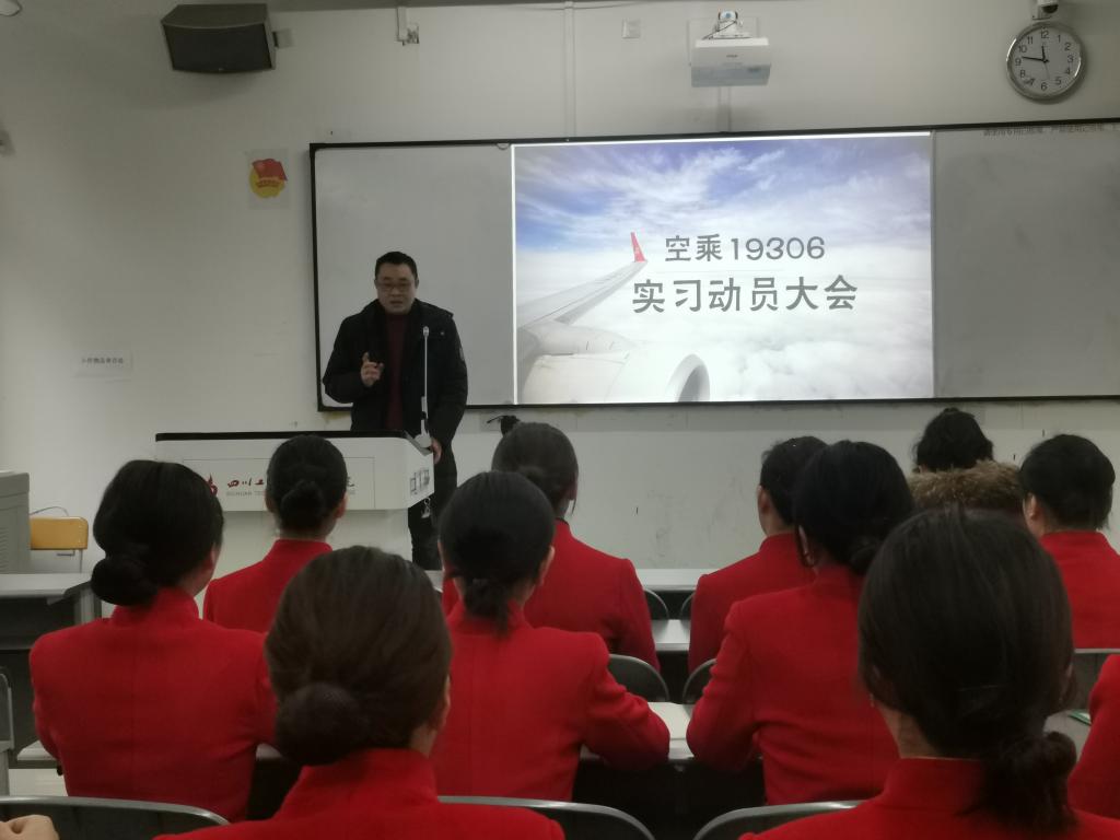 2021年1月2日下午,公司经济管理系空乘专业2019级专业实习动员大会在第二教学楼2A207教室召开。经管系江国才主任、书记助理廖永麒、空乘专业教研室主任肖媛媛及空乘专业19级全体员工参加了此次动员大会。会议由空乘19306班辅导员王肖肖主持。