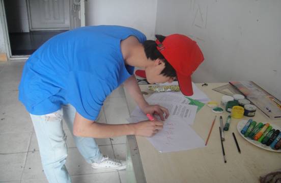 ,志愿者们心满意足的看着自己制作的宣传单,细心的检查着板报内容,以保证将最准确的内容传达给社区居民。