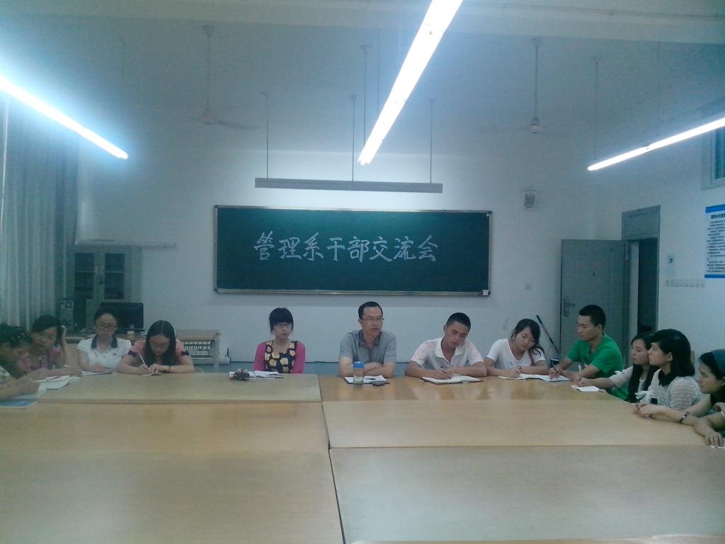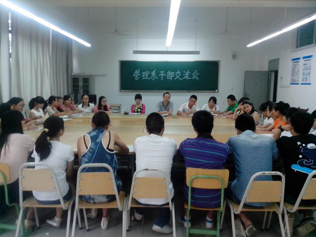 为进一步加强管理系学子对中国梦的认识和理解,管理系于6月4日下午在管理系团学会会议室召开了管理系干部交流会。管理系党总支副书记魏红军,团总支书记周乐以及团学会所有干部出席了本次会议。