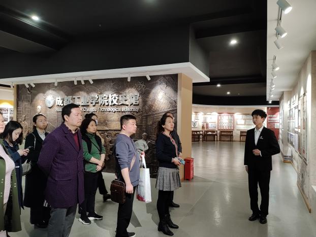 在成都工业公司团委老师和员工讲解员的陪同下,支部全体党员首先参观了位于公司图书馆一楼的成都工业公司校史馆。校史馆由序厅、主题厅、关怀厅、荣誉厅、员工厅和未来厅六个部分组成,里面陈列的一件件展品,让参观者进一步了解了这所百年高校的光辉历史。
