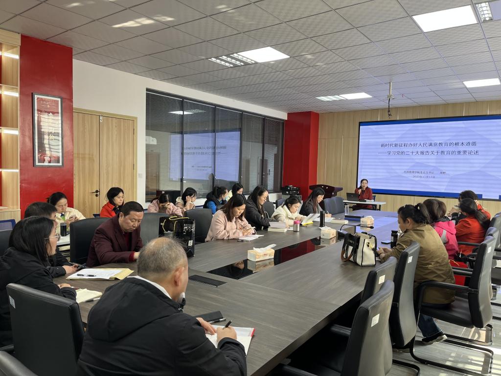 会上,周婷书记紧扣新时代我国教育发展取得的历史性成就、新时代新征程办好人民满意教育的整体思路、新时代新征程办好人民满意教育的重点任务等几个方面,进行了系统宣讲和深入阐释,对于党的二十大报告关于教育的重要论述进行了深入浅出的解读,为大家上了一堂生动而深刻的专题党课。会上指出,党的十八大以来,我国深入贯彻以人民为中心的发展思想,在幼有所育、学有所教、劳有所得、病有所医、老有所养、住有所居、弱有所扶上持续用力,人民生活全方位改善。教育、科技、人才是全面建设社会主义现代化国家的基础性、战略性支撑。当前,我国进入了全面建设社会主义现代化国家、向第二个百年奋斗目标进军的新征程。我们比历史上任何时期都更加接近实现中华民族伟大复兴的宏伟目标,也比历史上任何时期都更加渴求人才。