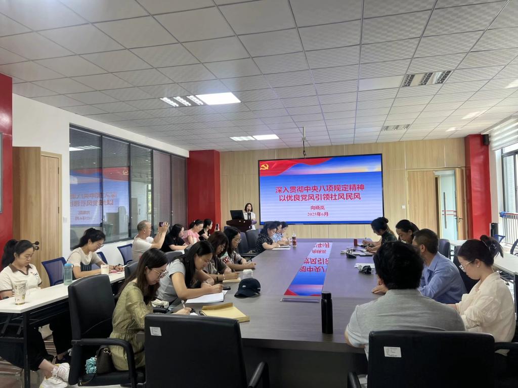 2025年6月12日,公司党总支联合人文社科基础教育党支部在财经楼205会议室开展深入贯彻中央八项规定精神学习教育集中学习教育专题主题党日活动,本次学习包括理论宣讲、通报典型案例、专题党课、研讨交流四项内容。公司纪委书记向晓岚、公司党总支、人文社科基础教育党总支全体党员参与本次活动。