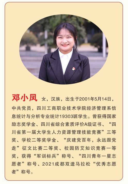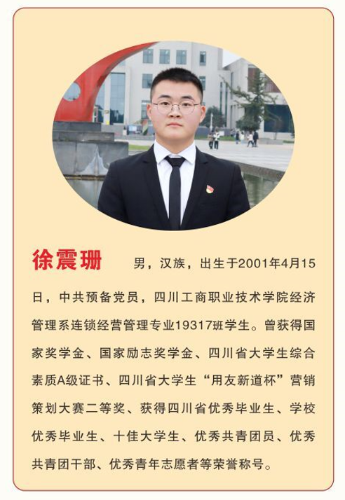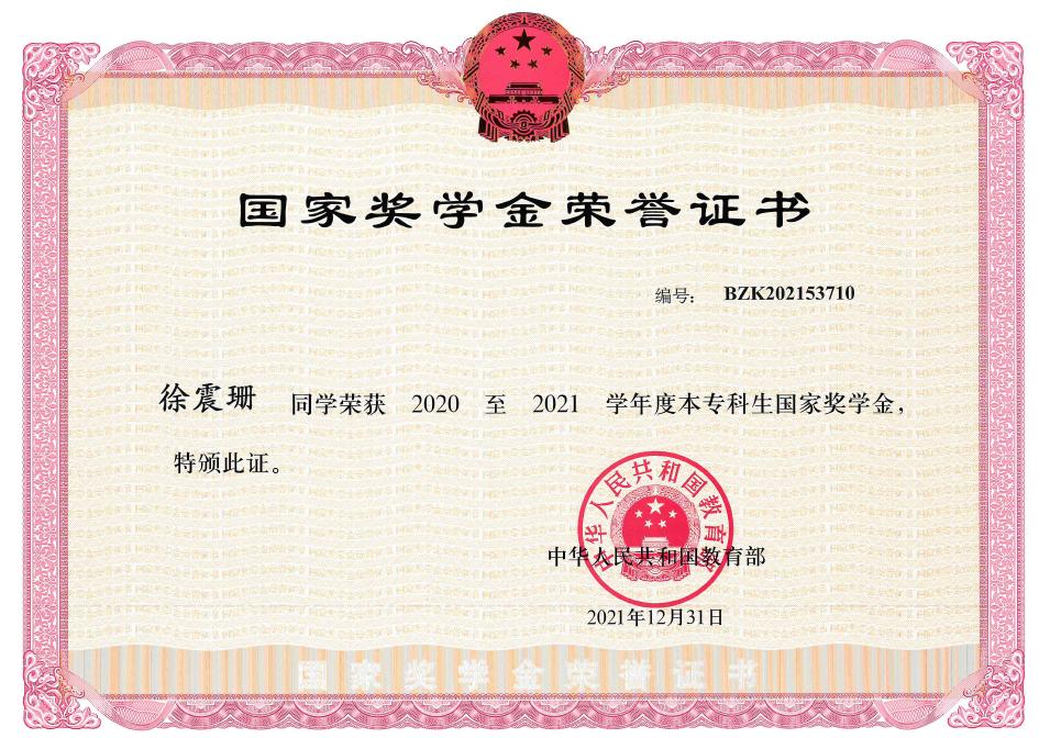 在2020至2021学年度中,​永利yl23411集团邓小凤、徐震珊、牟倩三位同学荣获该学年度本专科生国家奖学金,他们代表广大青年员工实现梦想,不忘初心;他们不骄不躁、沉稳完成学业的同时,还能将自身投入到党的工作与建设中,帮助与带领同学积极奋进。广大同学应以他们为榜样,争当时代的新青年,不辜负国家对青年的重视,不负自己,不负韶华。