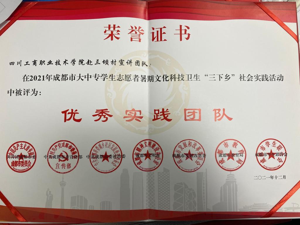 公司团总支获2021年成都市大中专员工志愿者暑期文化科技卫生“三下乡”社会实践活动优秀组织奖