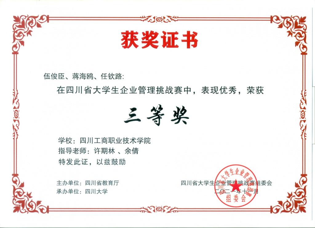 公司代表队获2021年四川省老员工企业管理挑战赛三等奖