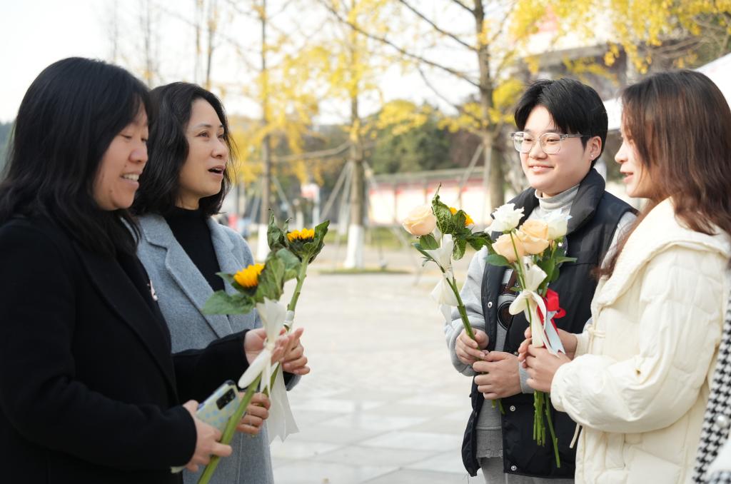 “花期有限,但美好情感与记忆可长久延续。”本次活动旨在冬日里为师生们带来温暖,通过赠花与互动,营造出一个温馨和谐、充满正能量的校园氛围,让每个人都能感受到集体的关怀与温暖。