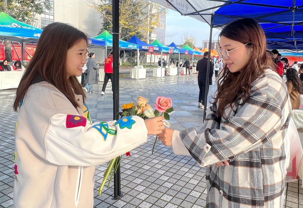 11月21日,永利yl23411集团团学会举办“花期有限,故事永存”活动,将鲜花送给双选会下的师生们,为老师和同学们带来一份温暖,也为即将踏入职场的毕业生加油鼓劲,帮助毕业生以积极心态进行就业。