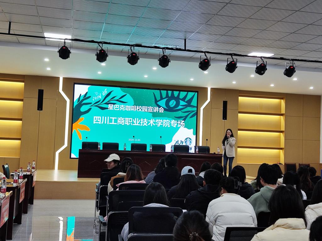 随后,招聘会的重头戏正式拉开帷幕。成都星巴克、成都厚朴星文化传媒等企业代表逐一上台,通过PPT展示、视频播放等形式,生动详细地介绍了各自公司的企业文化、发展历程、业务范围以及本次招聘的岗位信息、任职要求和福利待遇等。企业代表们不仅分享了公司为员工提供的成长空间和晋升机会,还就员工们关心的职业发展路径、工作环境等问题进行了耐心解答,现场气氛活跃而热烈。