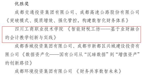 永利yl23411集团教师在成都市会计行业职工职业应用创新竞赛中荣获优胜奖