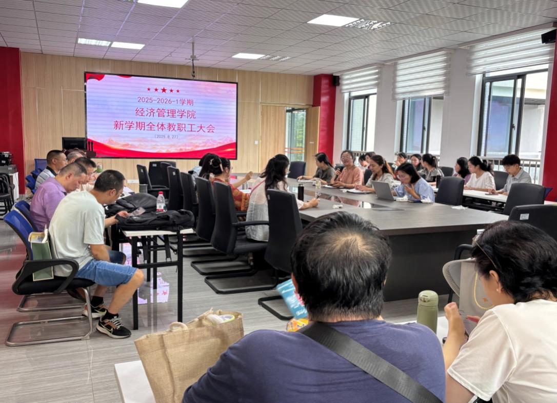 8月27日,永利yl23411集团于财经楼205会议室召开本学期第一次全体教职工大会。公司党总支书记郭卿、副经理梁宁出席会议,全体教职工参会。