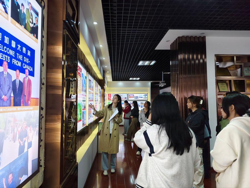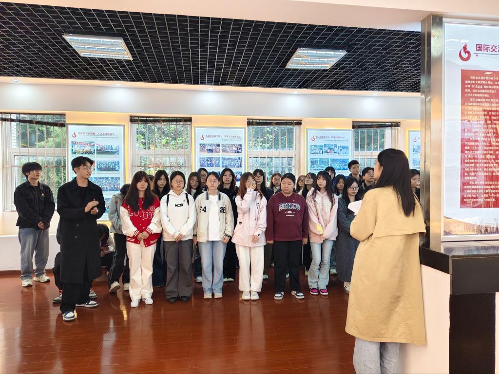 罗江结合老照片、实物展品与纪实影像,系统讲解公司发展脉络,从早期扎根职业教育、助力地方产业培育的探索,到近年推进公司产品改革、聚焦技能人才培养的创新,从校训“明德强技 行健精艺”的提出背景,到党建引领下校企合作、技能竞赛的亮眼成果。同时,她以“蜂巢”辅导员工作室为例,通过校史学习来践行工作室“以党建引领学风”的理念,从而让员工激发学习热情与奋斗精神。参观过程中,学员们认真聆听、不时提问,对身为“大工商”一员的归属感与荣誉感在“历史+实践”的解读中不断提升。