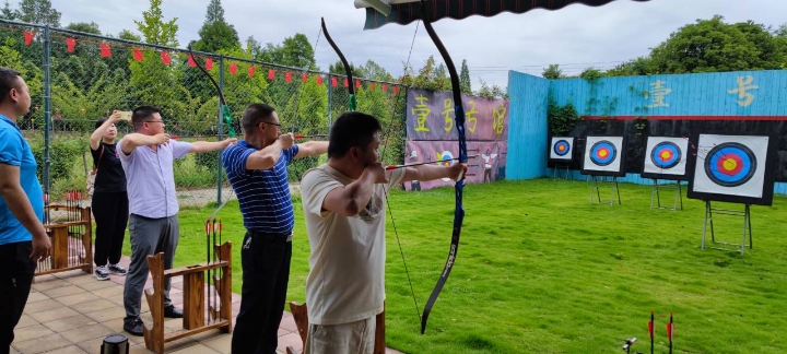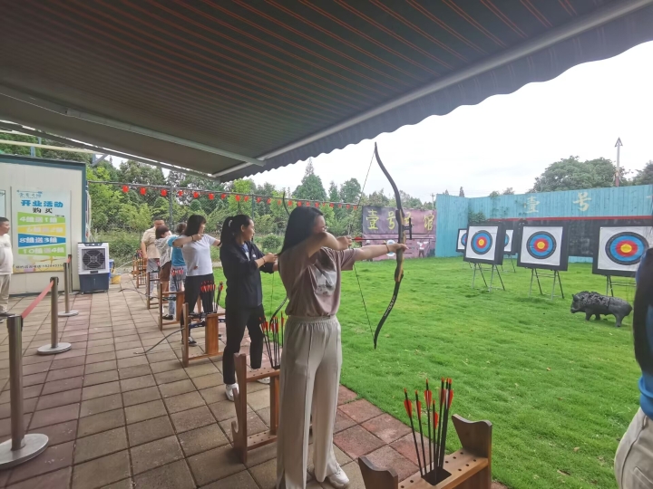 射艺现场,教职工们先跟着教练进行了基础的学习,搭箭、推弓、靠位、瞄准、撒放,运动锻炼的同时也缓解了工作压力。