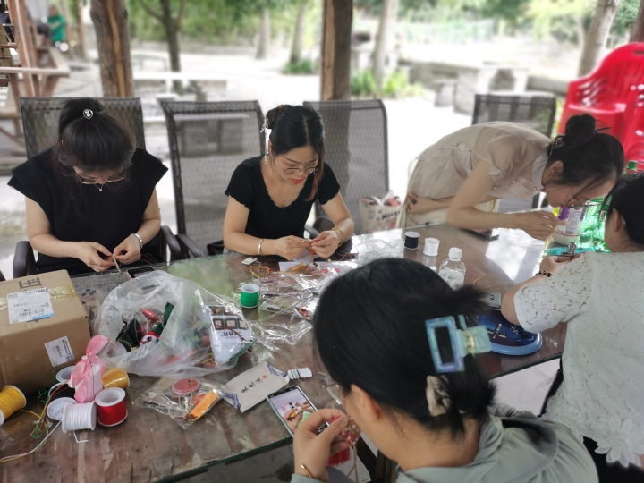活动精心设置了编织五彩绳、缝制端午香囊、射艺箭术三个项目。手工现场,各种香料、布料、五彩线、装饰品等堆满长桌,老师们围坐在一起,穿针引线、巧手匠心,编织了各式各样的五彩绳和香囊,向身边人传递美好祝福。