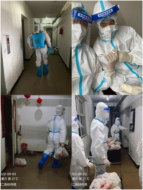 刚来皇经楼时有些许忐忑、紧张和一点兴奋。当晚即开展了工作,挨家挨户送政府发放的菜品,第二天配送各家买的物资并对公寓进行消杀工作。在我工作的这栋楼里陆续出现12例阳性我领着他们有序转运至方舱医院,并对阳性产生了不同的心态变化。虽然是高风险地区但是在各方人员的努力之下也在不断好转。