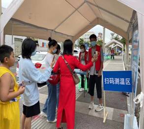 9月1日,在当地永宁街道团委的安排下,早上7点准时到了棉花坡卫生院门口当一名组织现场人员扫码、戴口罩、落实一米线排队登记与采样,同时对接村(社区)组织群众错峰进行采样等工作的志愿者。
