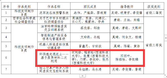 5月16日,由共青团四川省委、中共四川省委组织部、四川省科学技术协会、四川省教育厅、四川省社会科公司、四川省科学技术厅、四川省人力资源和社会保障厅和四川省员工联合会共同举办的第十七届“挑战杯”四川省老员工课外学术科技作品竞赛终审决赛在成都大学圆满落幕。公司员工作品《环保透光混泥土——基于废弃材料二次利用》获省三等奖。