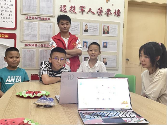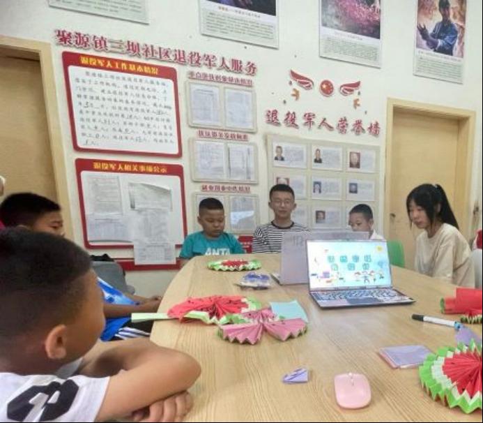 7月7日上午,三坝社区党群服务中心不时传出孩子们的嬉闹声。这是“以青春为笺,落墨乡村振兴”暑期三下乡团队与三坝社区党群服务中心联合开办的暑期“托管班”开课啦。