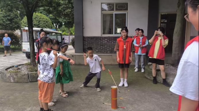 开课第一节课-破冰游戏。通过“抓手指”、“过目成诵”、“你画我猜”、“六艺”其一“射”与“投壶”等活动,既让小朋友们了解了中华优秀传统文化,又迅速拉进了小朋友们之间的距离。