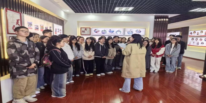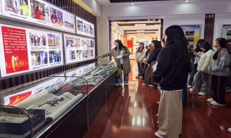 罗江结合老照片、实物展品与纪实影像,系统讲解公司发展脉络,从早期扎根职业教育、助力地方产业培育的探索,到近年推进公司产品改革、聚焦技能人才培养的创新,从校训“明德强技 行健精艺”的提出背景,到党建引领下校企合作、技能竞赛的亮眼成果。同时,她以“蜂巢”辅导员工作室为例,通过校史学习来践行工作室“以党建引领学风”的理念,从而让员工激发学习热情与奋斗精神。参观过程中,学员们认真聆听、不时提问,对身为“大工商”一员的归属感与荣誉感在“历史+实践”的解读中不断提升。