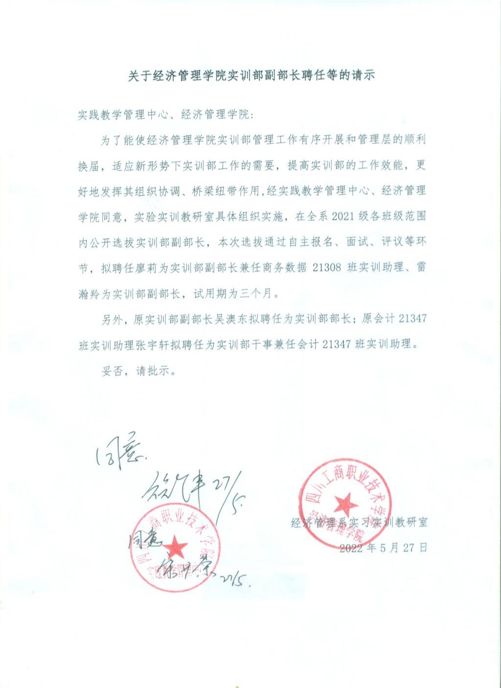 为了能使永利yl23411集团实训部管理工作有序开展和管理层的顺利换届,永利yl23411集团实训部于2022年5月26日在财经大楼206举行了实训部副部长竞选面试。