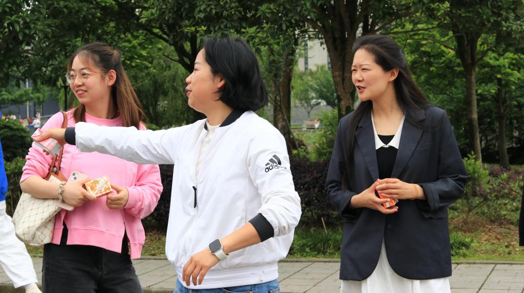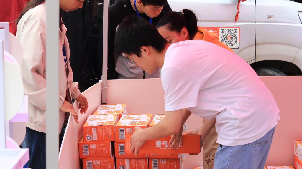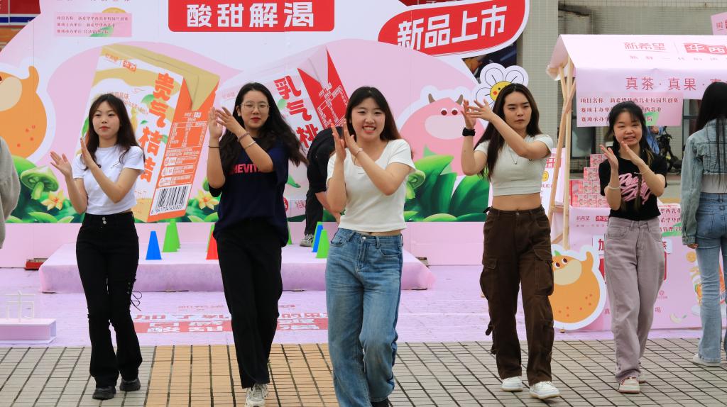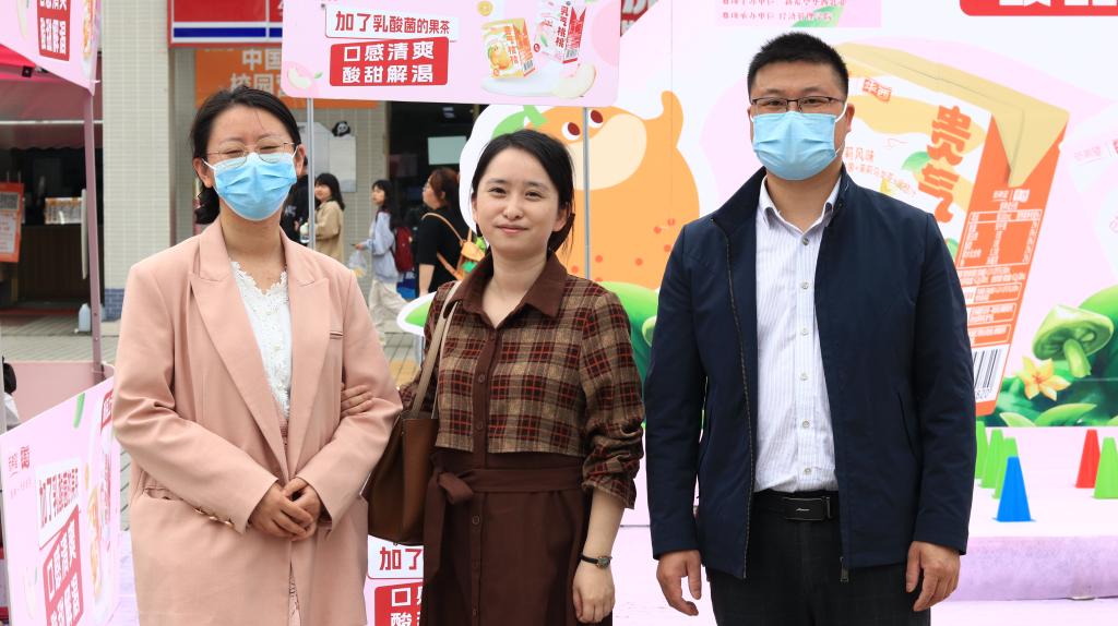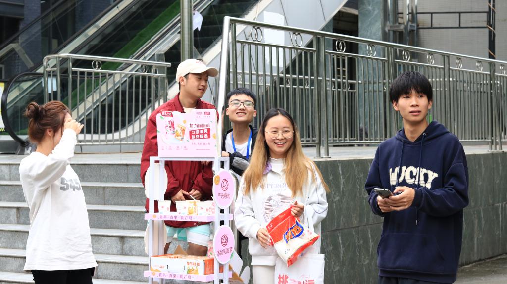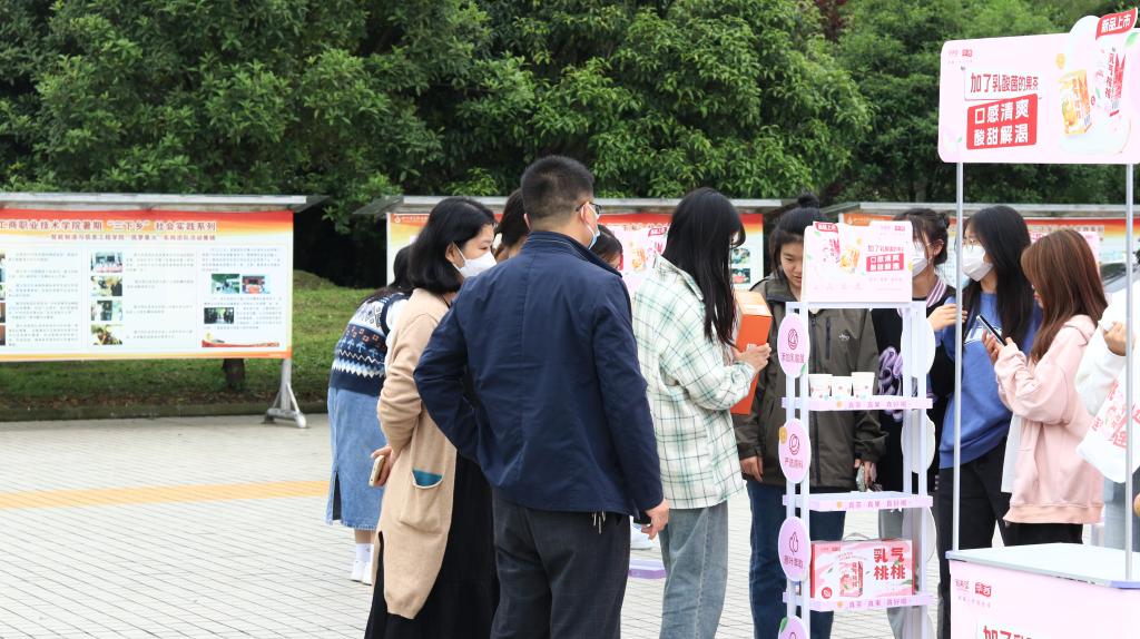 比赛共设有四个固定摊位和10个流动摊位。在销售现场,各色的吆喝声不绝于耳。每个摊位的产品整齐摆放在前,摊位周围聚集了大量询问的师生。为了更好地推销产品,同学们使出了浑身解数,通过促销优惠、随机抽奖、免费试喝等方式加大促销力度。在这些小活动的助力下,不少师生选购了自己喜爱的产品。在活动现场,还安排了社团节目表演、套圈小游戏等活动,烘托比赛热闹氛围,吸引了更多员工参与活动。
