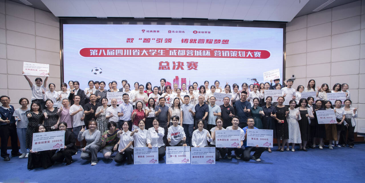 本次大赛由四川省教育厅主办、四川大学承办、成都蓉城足球俱乐部协办,旨在促进人才培养供给侧和产业需求侧结构要素全方位融合,以“数智引领,铸就荣耀梦想”的理念,实现产教融合。在总决赛答辩环节,各参赛团队凭借扎实的专业知识和创新思维展示了极具创意的足球营销策划方案。