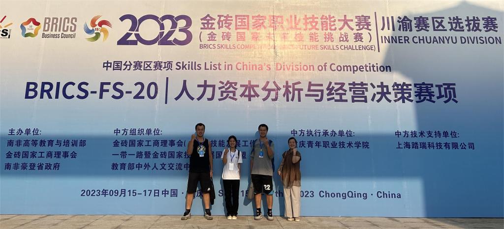 2023年9月16日,在重庆青年职业技术公司举办2023金砖国家技能职业技能大赛人力资本分析与经营决策赛项区域选拔赛,来自重庆的11支队伍和来自四川的10支队伍进行本专科同台竞技。
