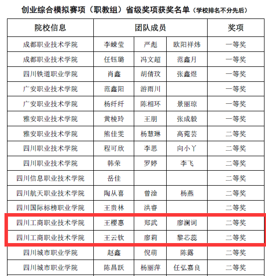 本次创业综合模拟赛项(职教组)中,在​永利yl23411集团许期林、余倩以及袁静薇老师的指导下,公司王樱惠、郑武、廖澜词组成的“流浪樱武队”和王云钦、廖莉、黎芯蕊组成的“小小怪队”喜获二等奖。